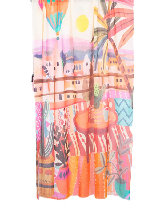 Schal mit Digitaldruck | Baumwolle & Modal | Papaya