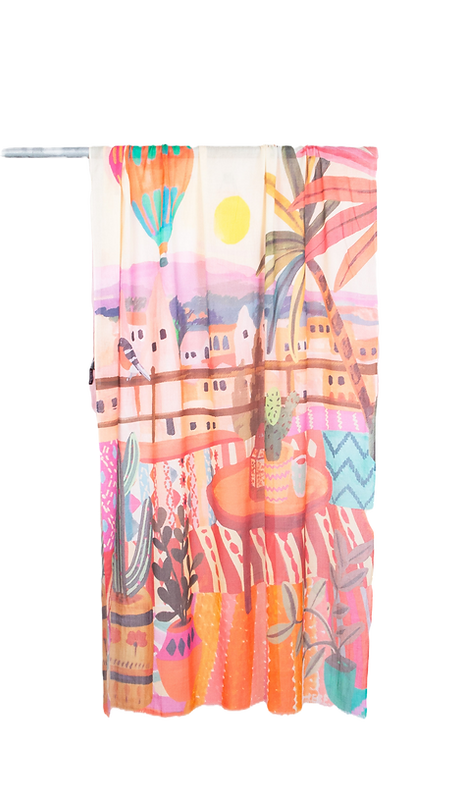 Schal mit Digitaldruck | Baumwolle & Modal | Papaya