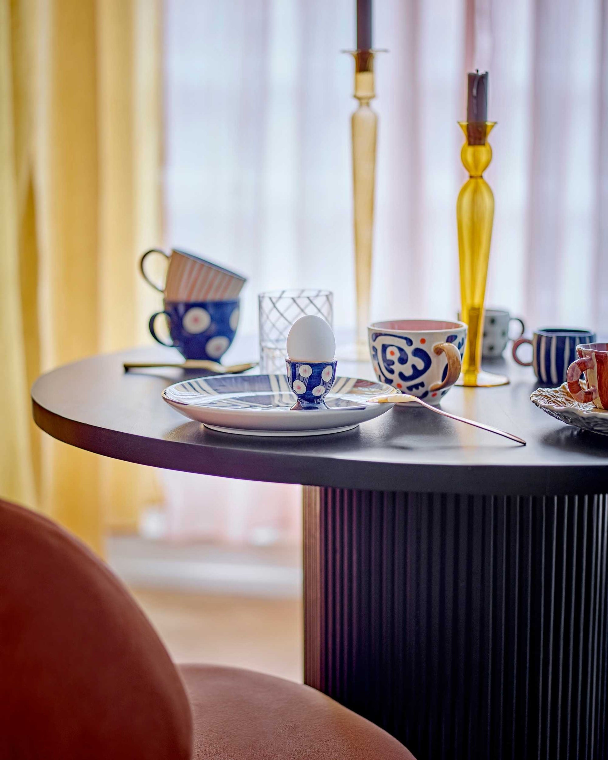 Das Eviaya Tassen-Set von Bloomingville besteht aus drei charmanten Tassen aus Steingut. Jede Tasse ist mit handbemalten Mustern in sanften Rosa-, Blau-, Braun- und hellen Tönen verziert. Durch die handwerkliche Bemalung entstehen leichte Unterschiede in den Mustern und Farbintensitäten, wodurch jede Tasse ein Unikat wird.