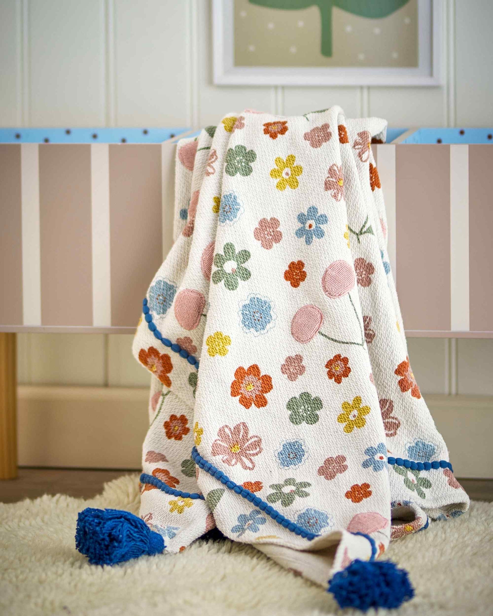 Eine wunderschöne Decke aus recycelter Baumwolle von Bloomingville Mini. Sie besticht durch ihr bezauberndes Kirschmuster in zarten Rosatönen. In Kombination mit verschiedenen Blautönen ergibt sich ein traumhaftes Farbspiel. Eine Decke die Farbe in Dein Zuhause bringt. Als Hingucker auf dem Sofa oder vielleicht auch bei Deinen Kindern im Zimmer. Eine Decke die zu jeder Generation passt.