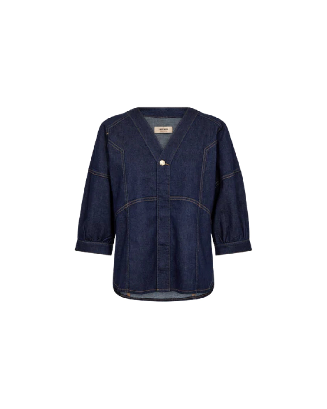 Ein vom Denim inspiriertes Hemd mit modernem Twist. Für Frauen, die Lässigkeit von Denim lieben und dennoch zarte Stoffe schätzen. Reguläre Passform, schmeichelnder V-Ausschnitt und Knopfleiste, ergänzt durch feine Teilungsnähte für Form und Struktur. Die leicht verkürzten Ärmel verleihen einen eleganten Look. Perfekt zur Jeans oder auch schön zu einem Rock kombinierbar.