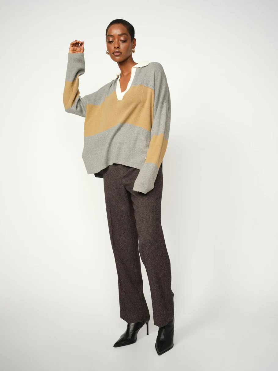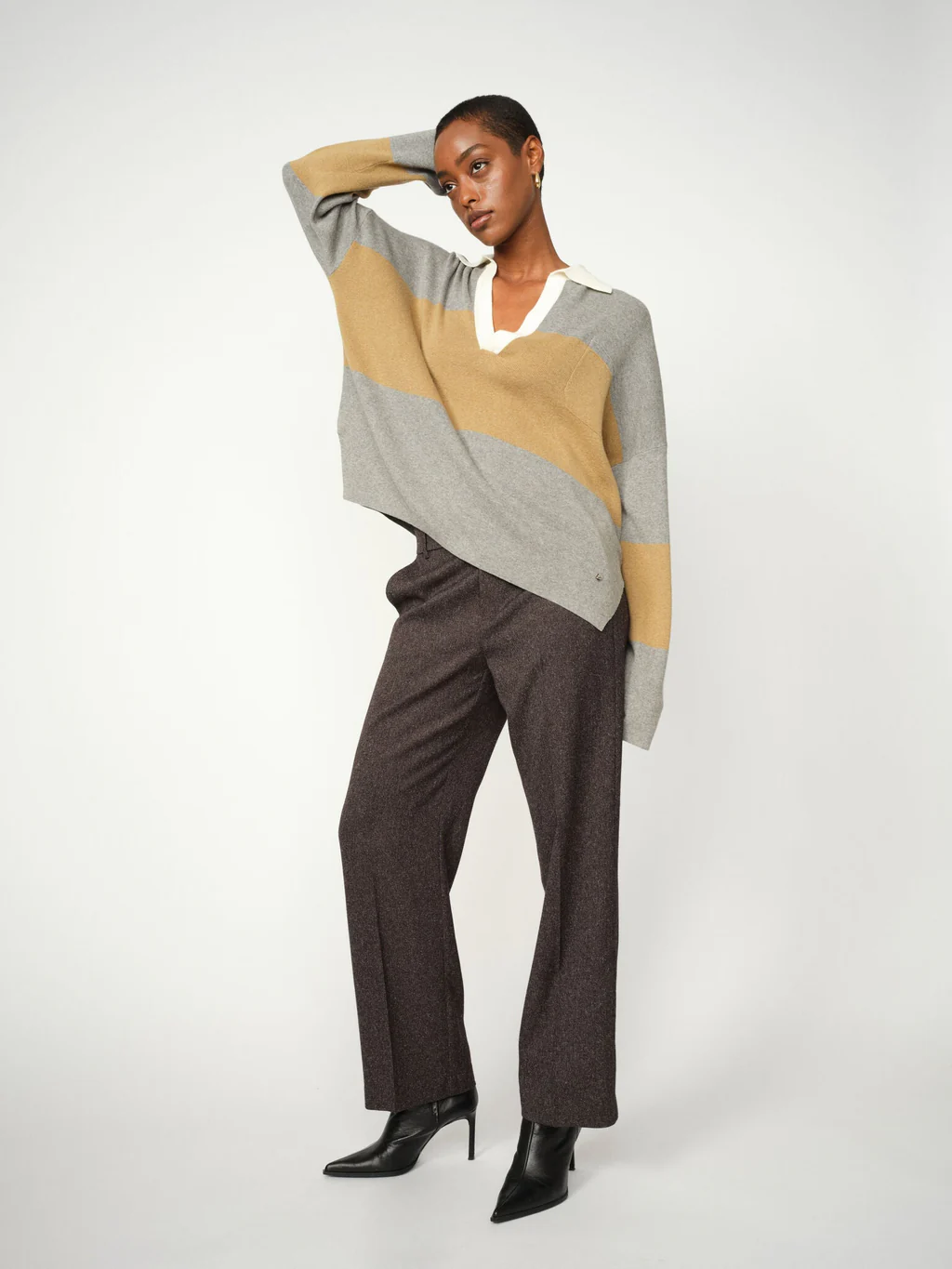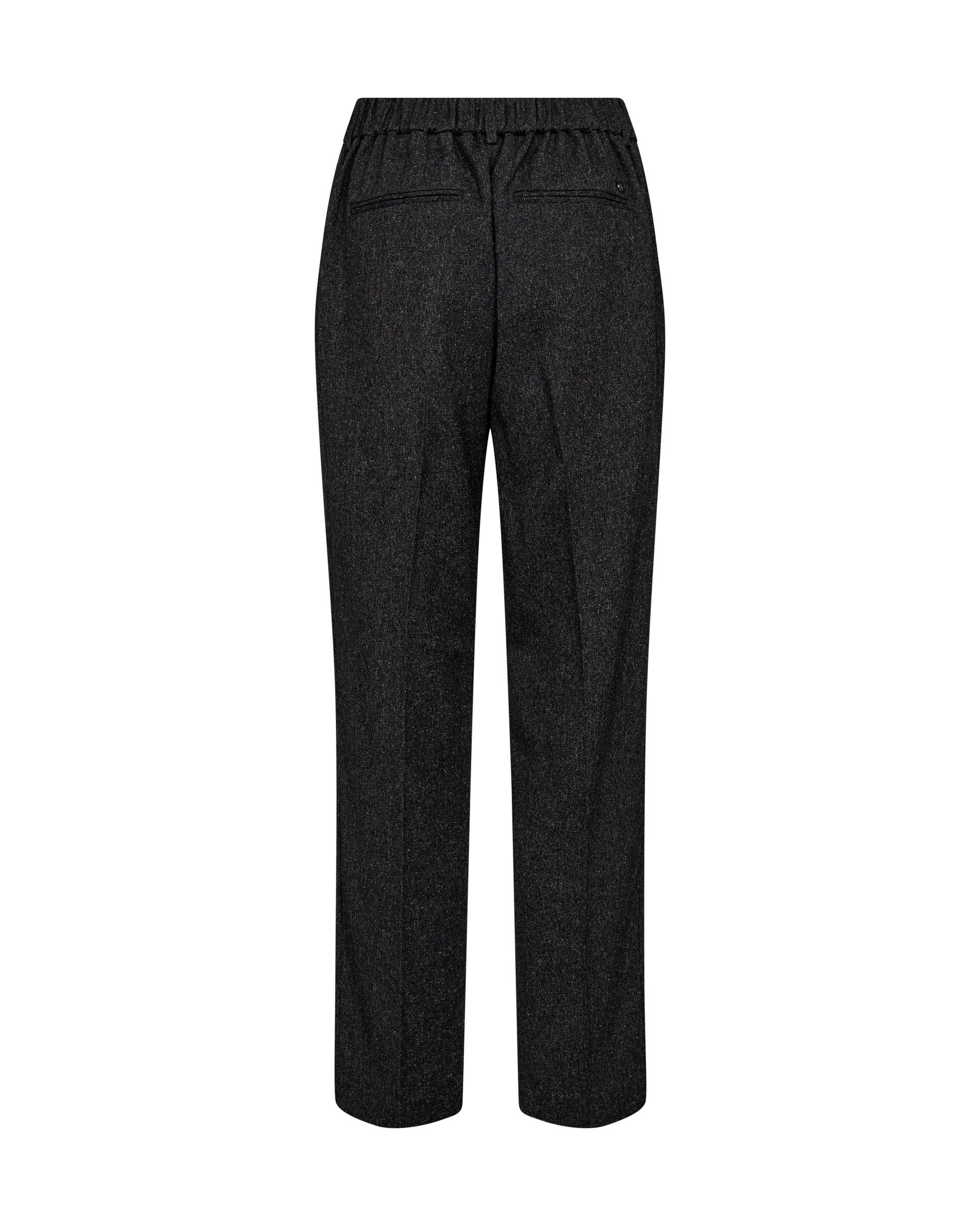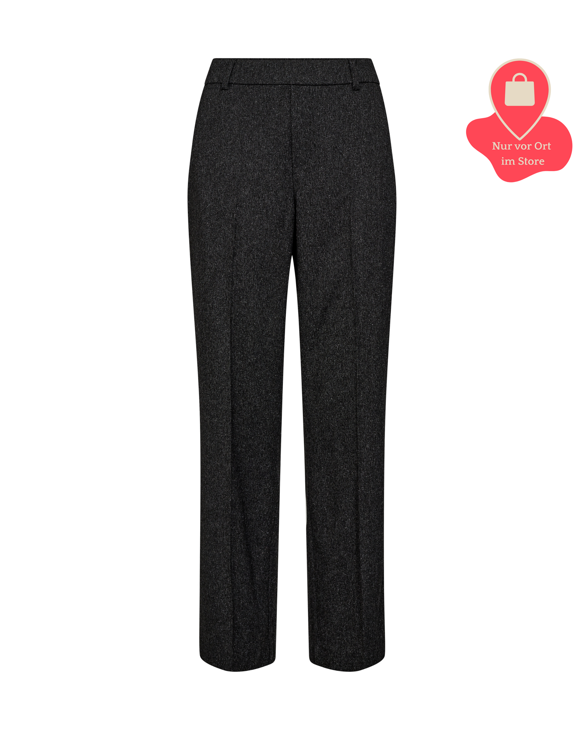Diese stilvolle maßgeschneiderte Hose ist in einer regulären Passform mit einer schmeichelnden mittelhohen Taille geschnitten, was für einen mühelosen eleganten Ausdruck sorgt. Sie hat einen elastischen Bund, Bügelfalten, Gürtelschlaufen und diskrete Falten auf der Rückseite, die sowohl Struktur als auch Komfort bieten. Kombiniere sie mit einer Bluse für einen schicken Look oder mit einem Statement-T-Shirt für ein entspannteres, aber dennoch raffiniertes Outfit.