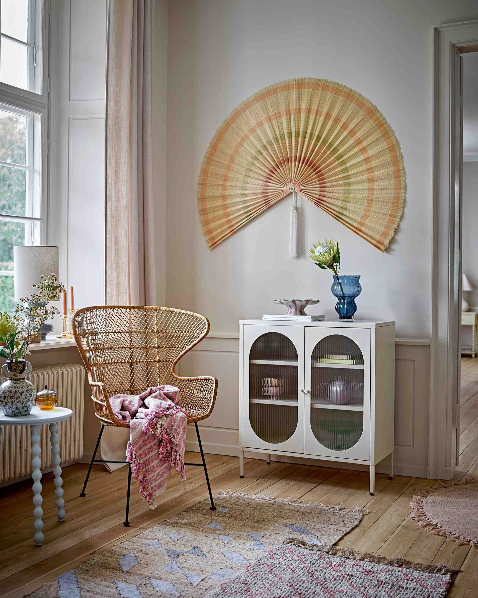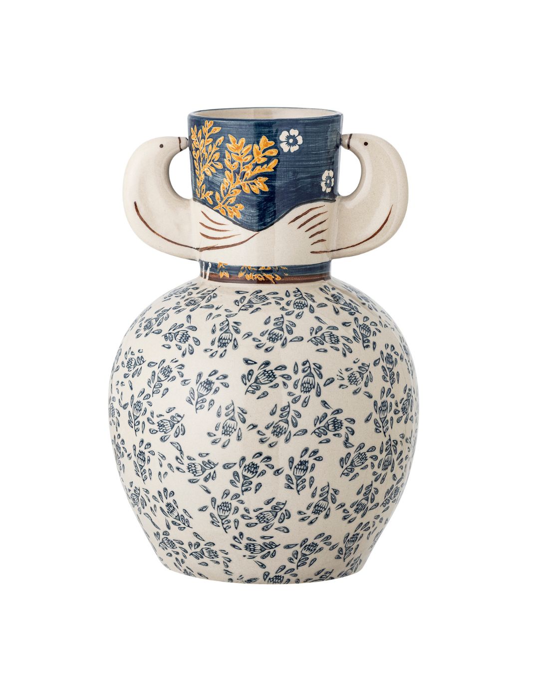 Kunstvoll und charakterstark: Die Hezha Vase von Bloomingville verbindet handdekorierte Details mit einem sanften Farbspiel aus Blau, Braun und warmem Gelb. Zarte Vogelmotive und ein geprägtes Design verleihen ihr eine ruhige, fast erzählerische Ausstrahlung – als hätte sie eine Geschichte zu erzählen. Ob mit einzelnen Zweigen oder pur als Objekt – Hezha bringt Wärme und einen Hauch Poesie in dein Zuhause.