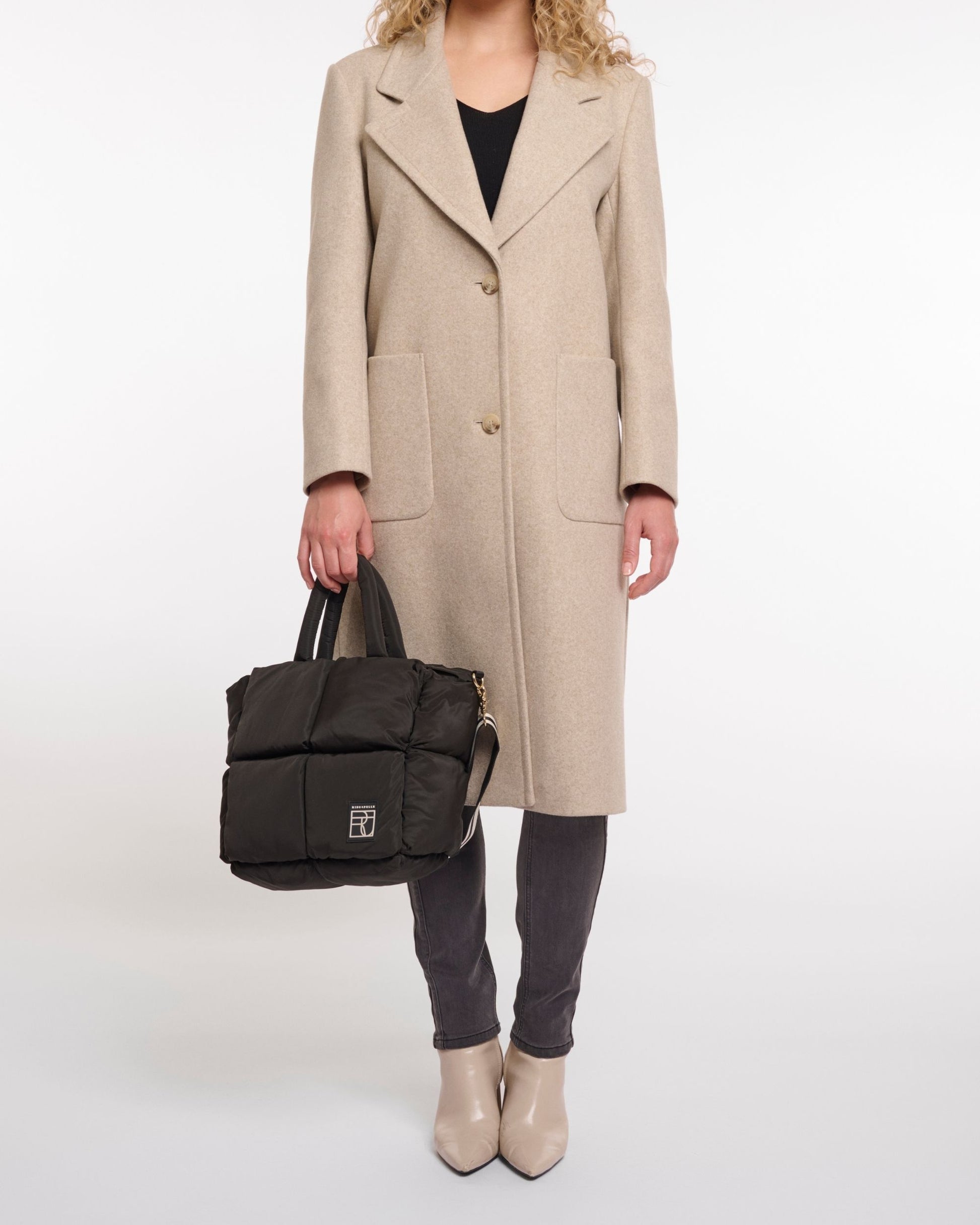 Diese großzügig geschnittene Handtasche ist mit einer luxuriösen, kissenartigen Polsterung versehen, die zum Berühren einlädt. Sie ist ein Statement-Stück, praktisch und unbestreitbar schick. Mit ihrem abnehmbaren Tragegurt und Logo-Details besticht sie durch Qualität und Design.