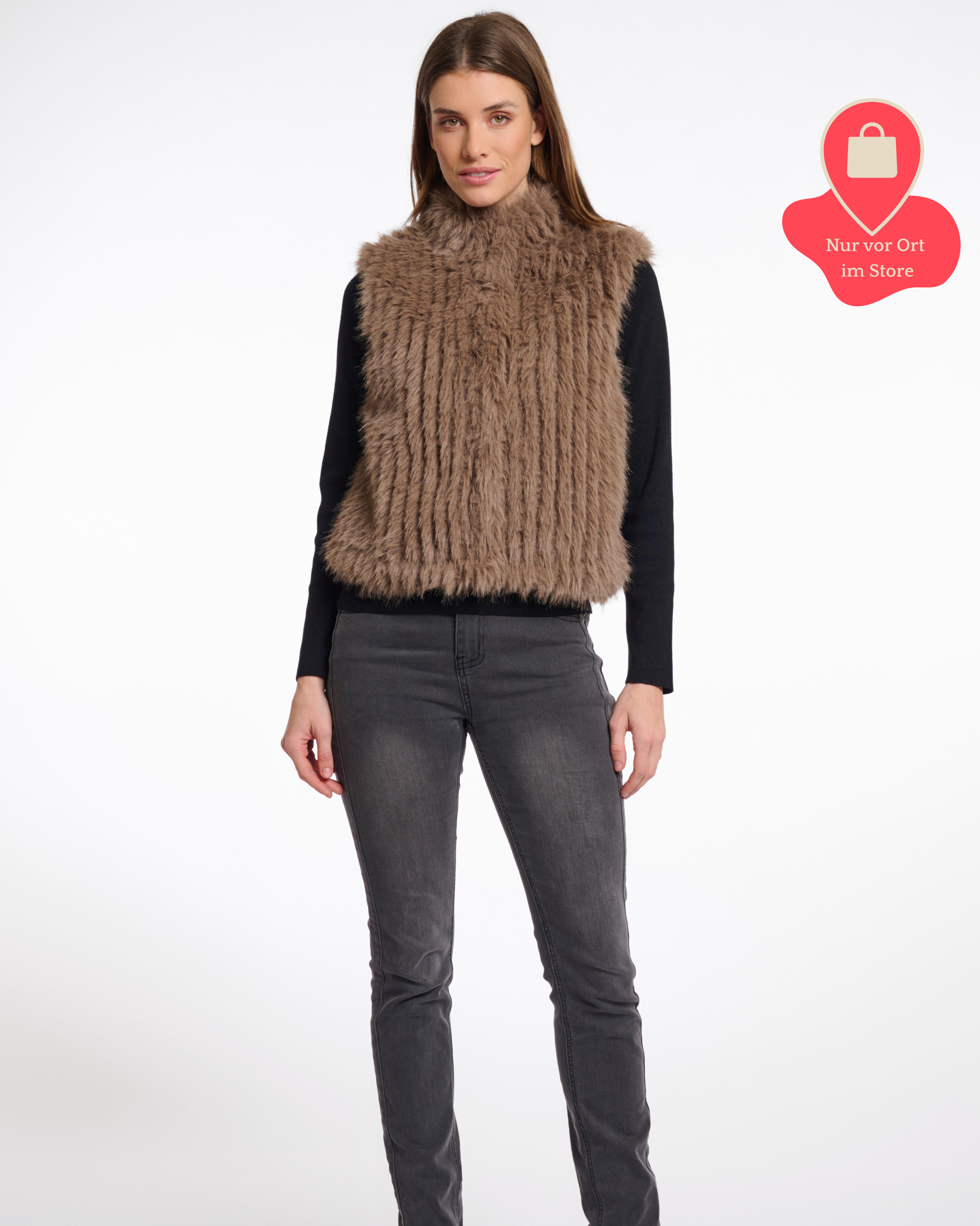 Style Dich mühelos mit dieser kurzen Weste aus Kunstfell. Dieses unverzichtbare Teil verleiht jedem Outfit mühelos einen echten Hingucker-Look. Mit ihrem Stehkragen und dem Druckknopfverschluss vorne strahlt sie Raffinesse aus. Was sie jedoch besonders macht, ist das unwiderstehlich weiche Material, das dazu einlädt, berührt zu werden.